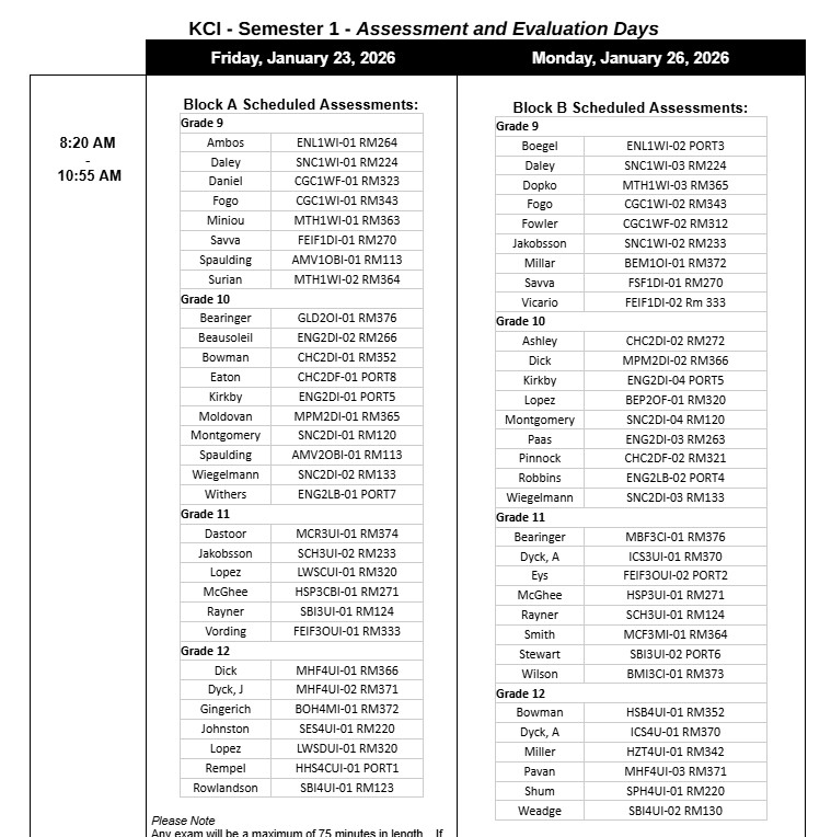 - Block C (1:15-2:30) – Grade 12 classes + anyone in any grade who missed their picture.